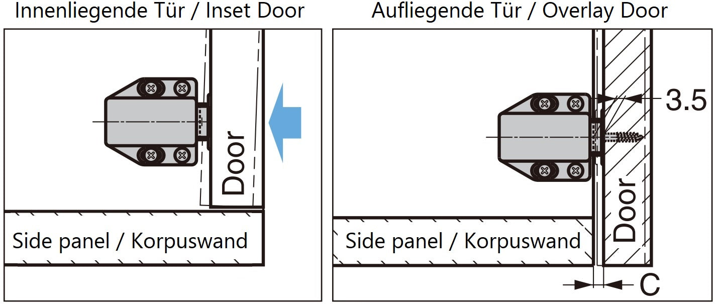 • The minimum distance between the door and the furniture body is 3.5 mm (for further details see assembly drawing )