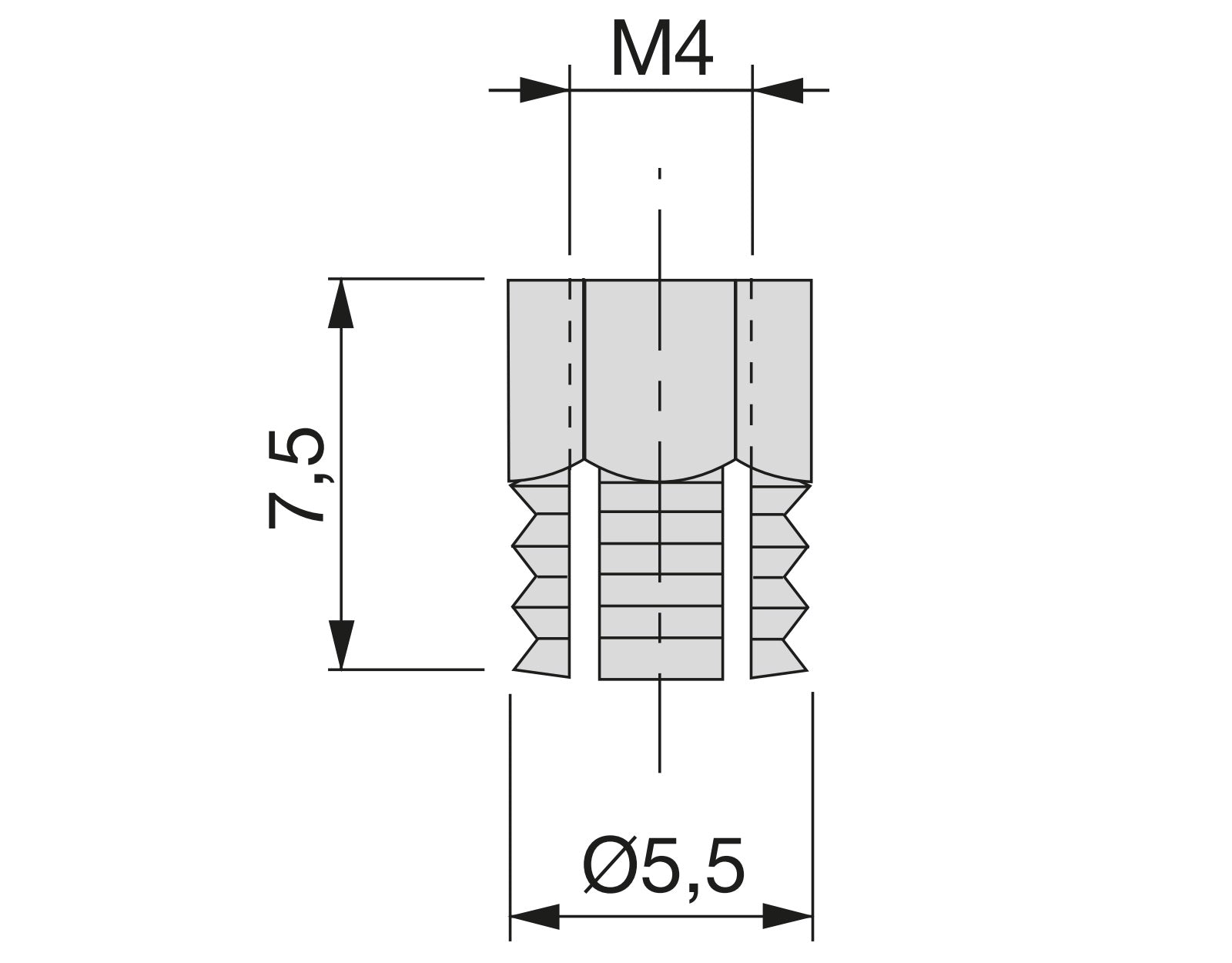 - The expansion sleeve with internal thread M4 is for pressing into the drill hole