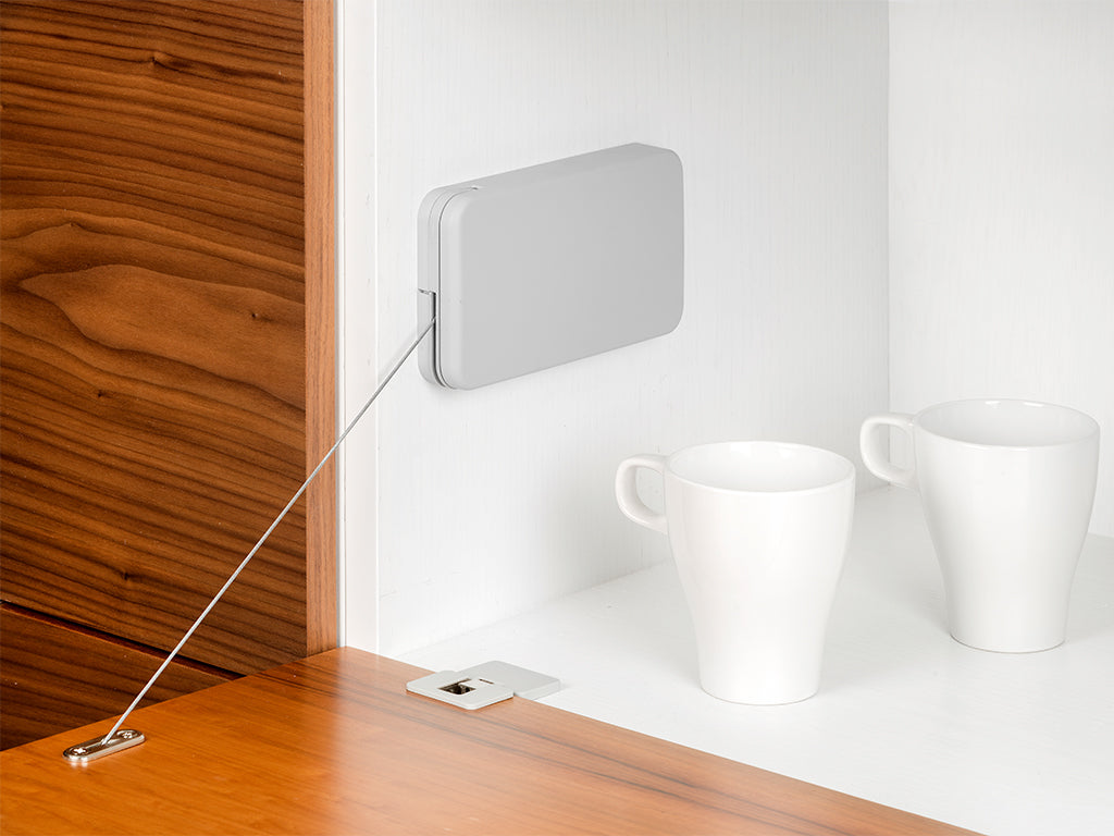 Application: Cable pull flap holder for bar compartment, bar compartment flap and much more. [caption id="attachment_141120" align="alignnone" width="420"] High-quality bar compartment flap holder with soft-close damper and self-closing mechanism, including cover cap and fastening screws, from EMUCA, load capacity: 4 kg, gray. Application example[/caption] The bar compartment flap holder 1009521 (cable pull holder) is a modern cable pull fitting for flap weights up to max. 4 kg and is supplied with the matching cover cap in grey. The flap fitting with cable pull for furniture flaps and bar compartments 1009521 can be installed not only horizontally but also vertically, which means it can also be used for cabinets with a depth of 180 mm (7-3/32″) or more. [caption id="attachment_141130" align="alignnone" width="420"] High-quality bar compartment flap holder with soft-close damper and self-closing mechanism, including cover cap and mounting screws, from EMUCA, load capacity: 4 kg, gray. Application example for horizontal installation.[/caption] The opening angle can be easily adjusted by turning a screwdriver. [caption id="attachment_141140" align="alignnone" width="420"] High-quality bar compartment flap holder with soft-close damper and self-closing mechanism, including cover cap and mounting screws, from EMUCA, load capacity: 4 kg, gray. Adjustment options[/caption] The high-quality bar compartment flap holders 1009521 have a simple and modern design and are ideal for, among others: