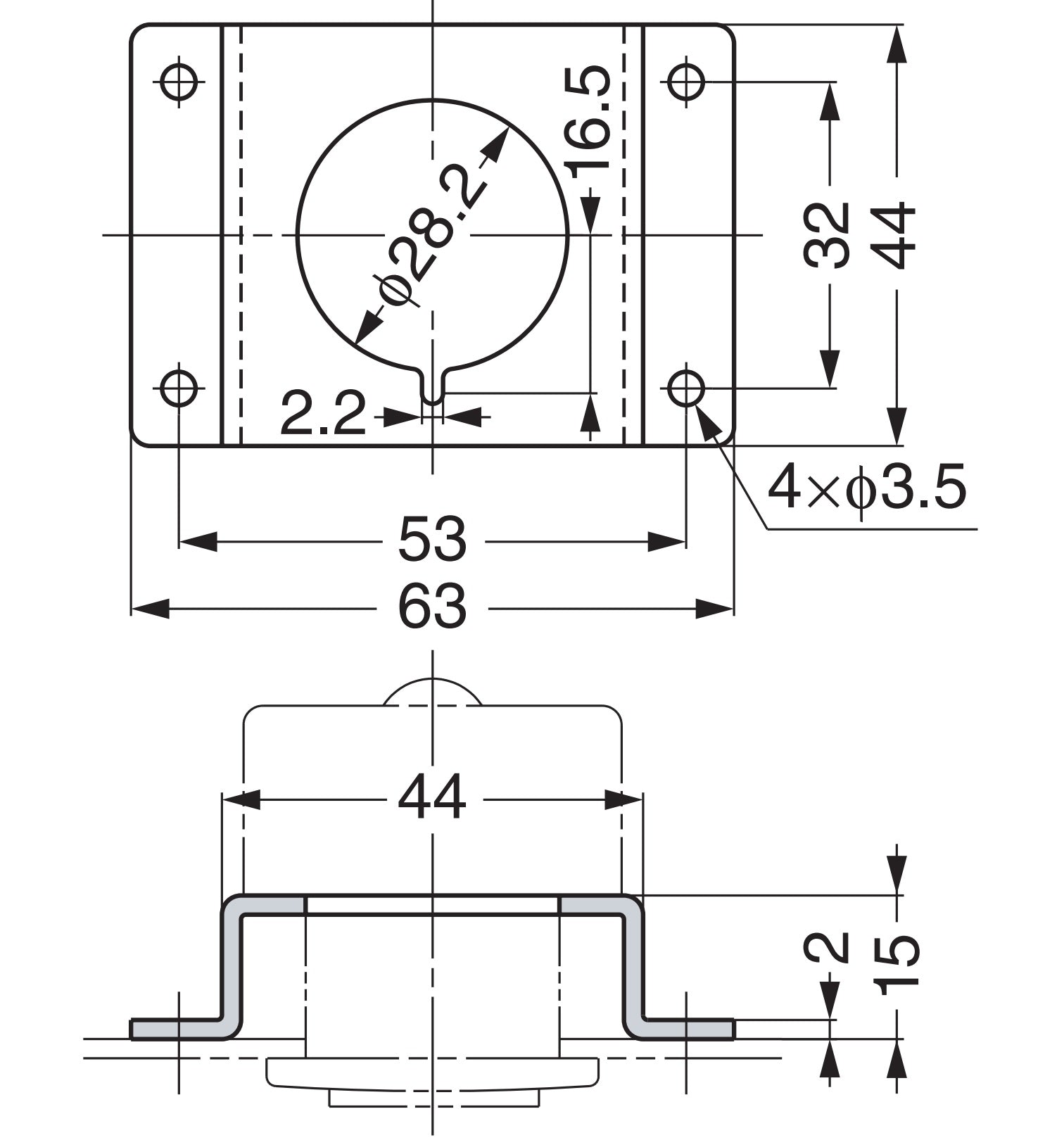 • For doors with a thickness of 15 mm (19/32″) to 25 mm (63/64″), only one hole with a diameter of ⌀28 mm (1.11″) must be made