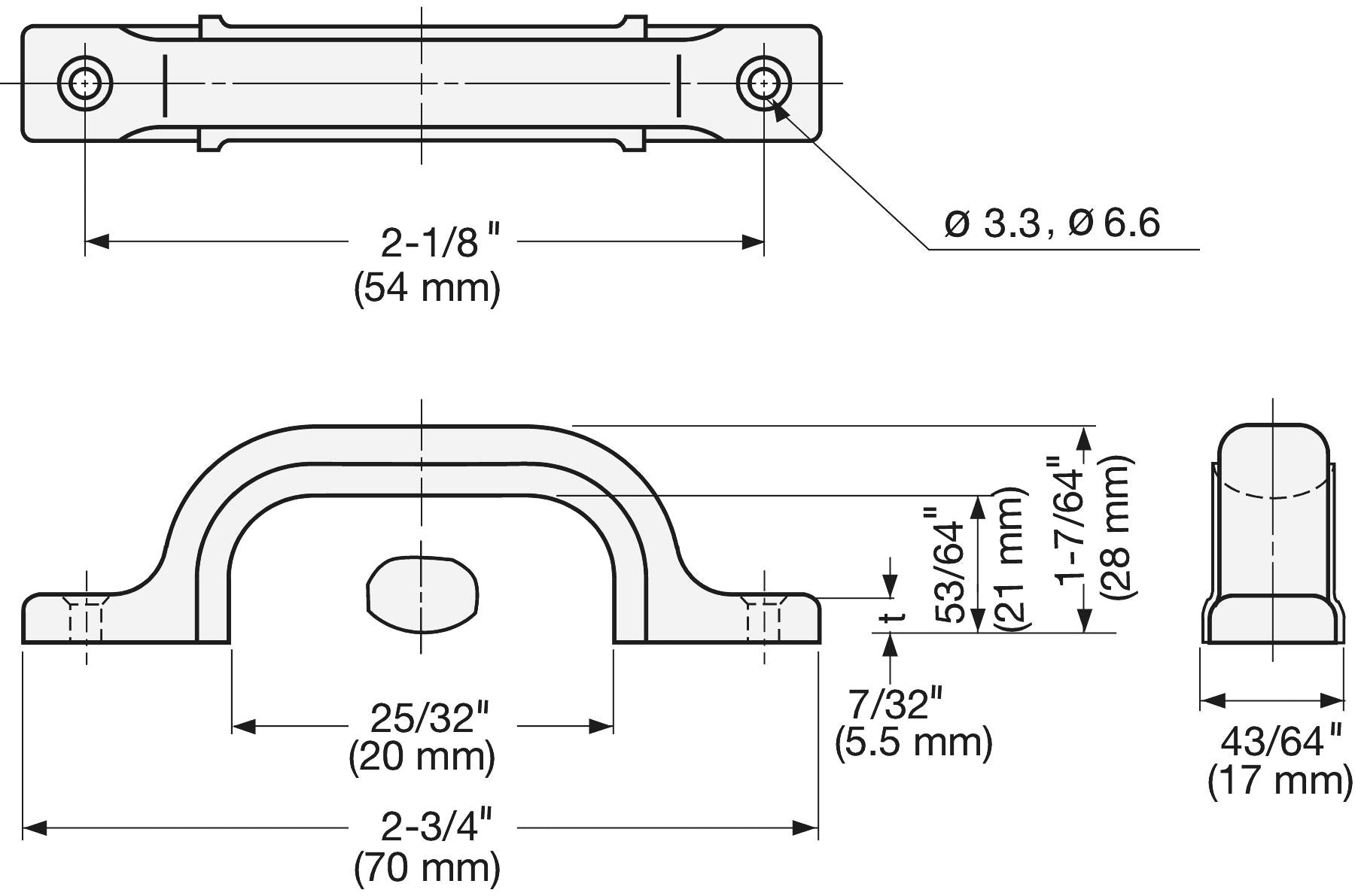 • Inner handle height: 21 mm (26/32″)
