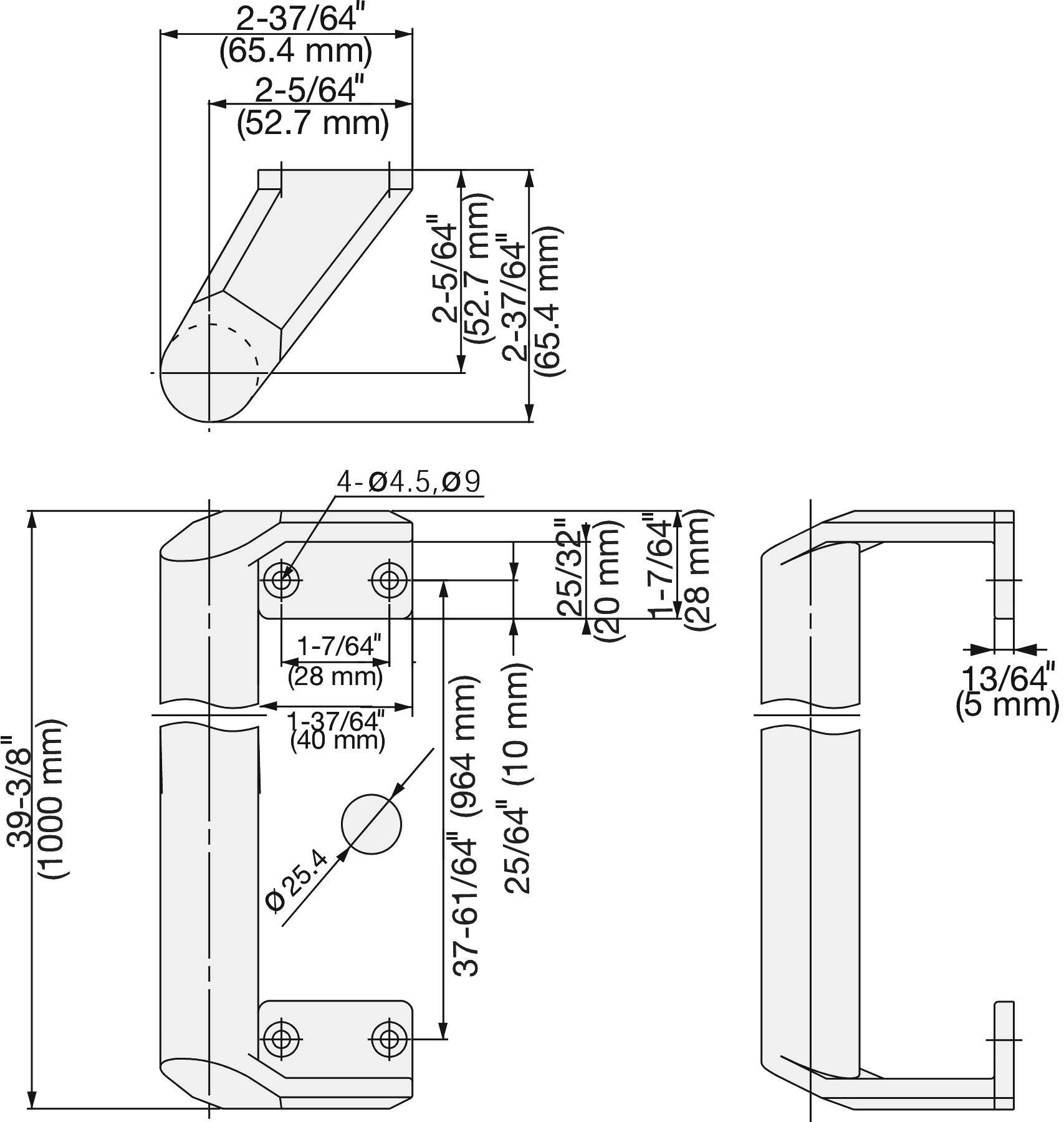 - Width of the stainless steel door handle: 1000 mm (39.38″)