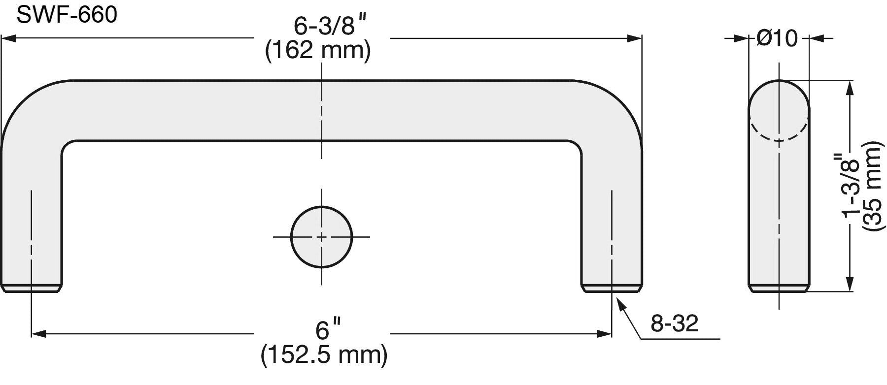 Edelstahlmöbelgriff SUS316, 162 mm (6,4″) SWF-660. Bügelgriff, aus feinstem korrosionsfreiem Edelstahl V4A (SUS316) für hochwertige Einrichtungen, sowie für den Außenbereich, feuchte, raue und hochkorrosive Umgebungen von Sugatsune / LAMP® (Japan)