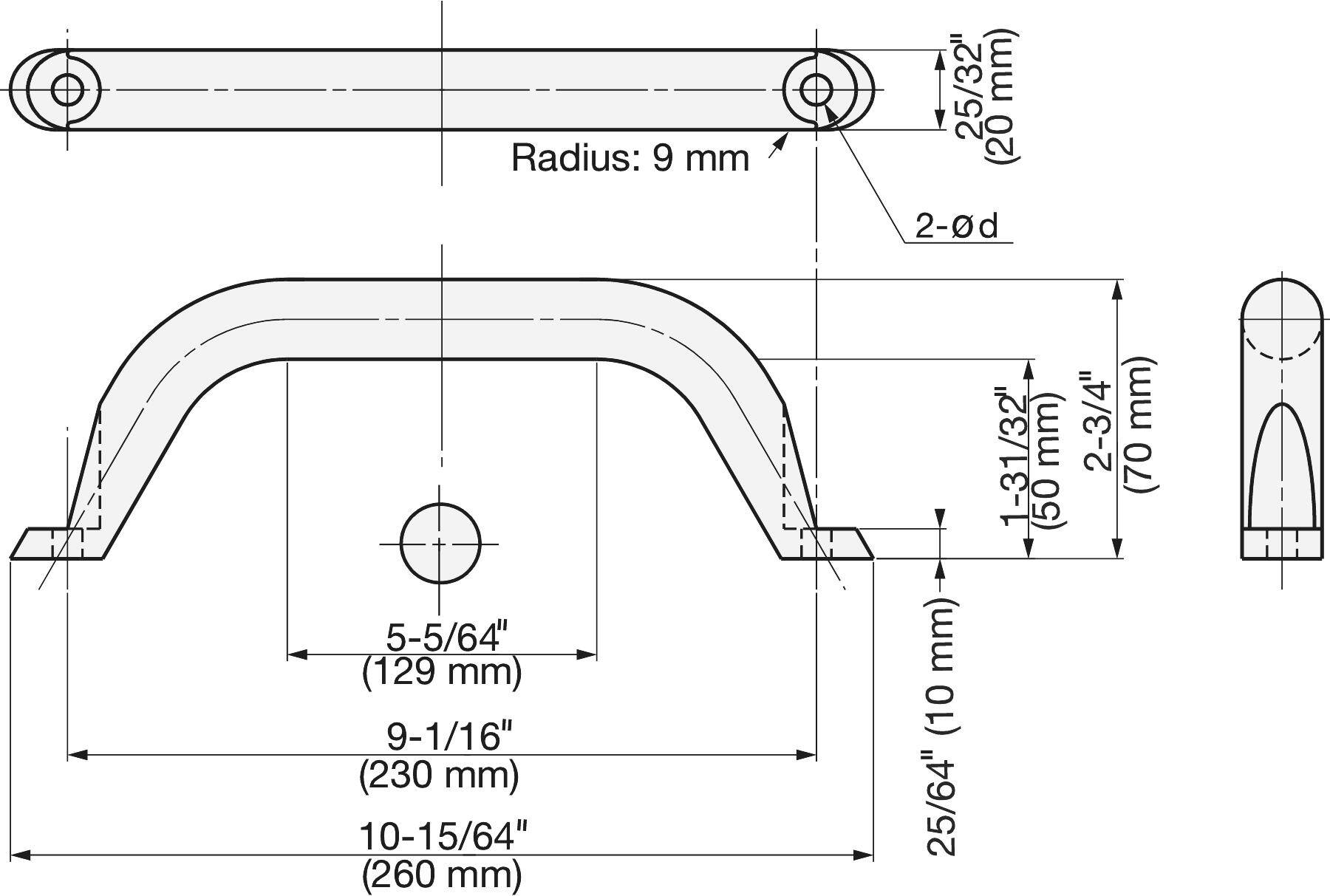 [caption id="attachment_38731" align="alignnone" width="420"] MG-250 SUS316 stainless steel furniture handle, 275.5 mm. Technical drawing[/caption] Included in delivery: