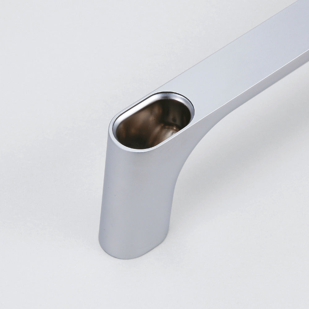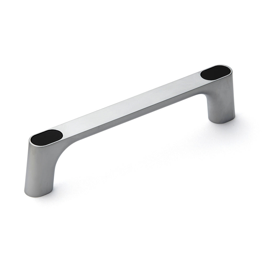 High-quality tool handle made of solid zinc alloy (ZDC), chrome-plated, satin matt, with black cover caps KMH-150-BL