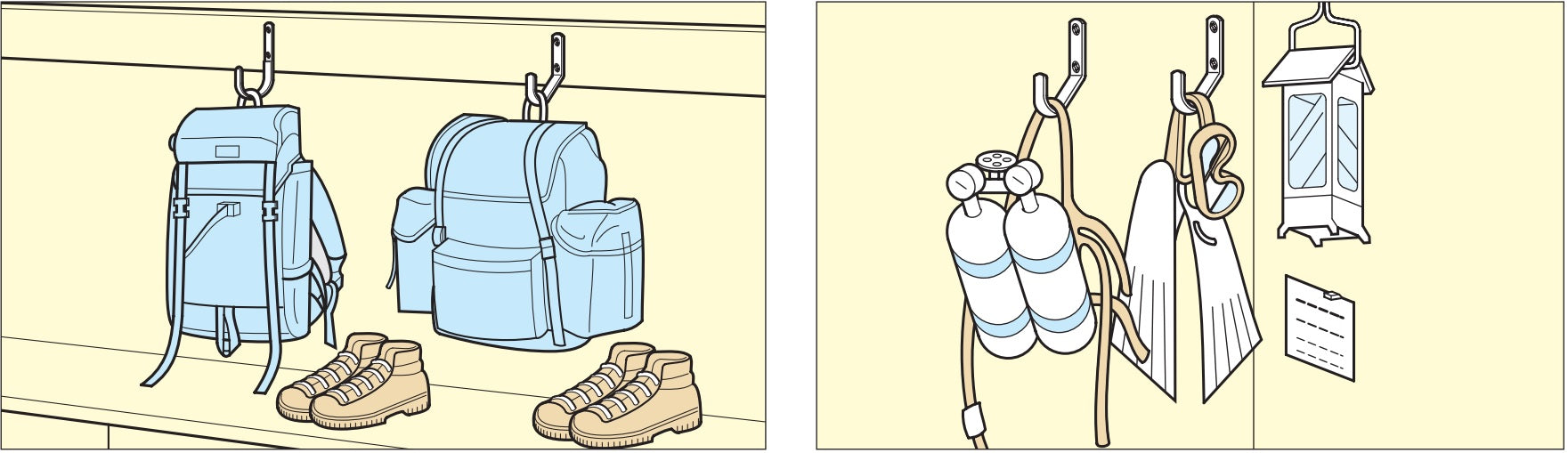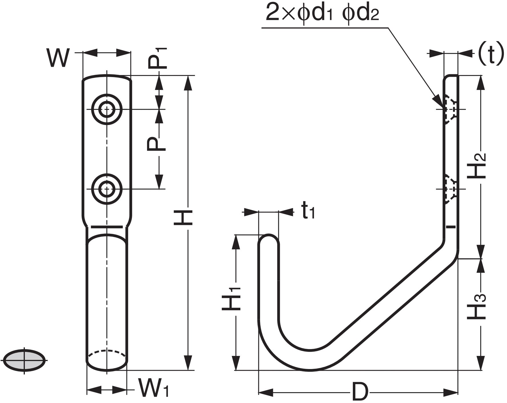 - The universal hook JF120M has two fixing holes with diameter (⌀d1) ⌀5.3 mm (13/64″), with countersunk