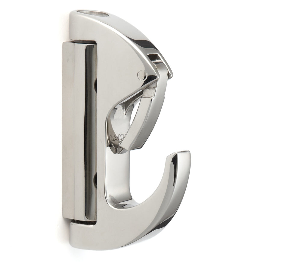 - 1 piece hook with safety flap EN-R100F made of high-quality stainless steel, shiny polished