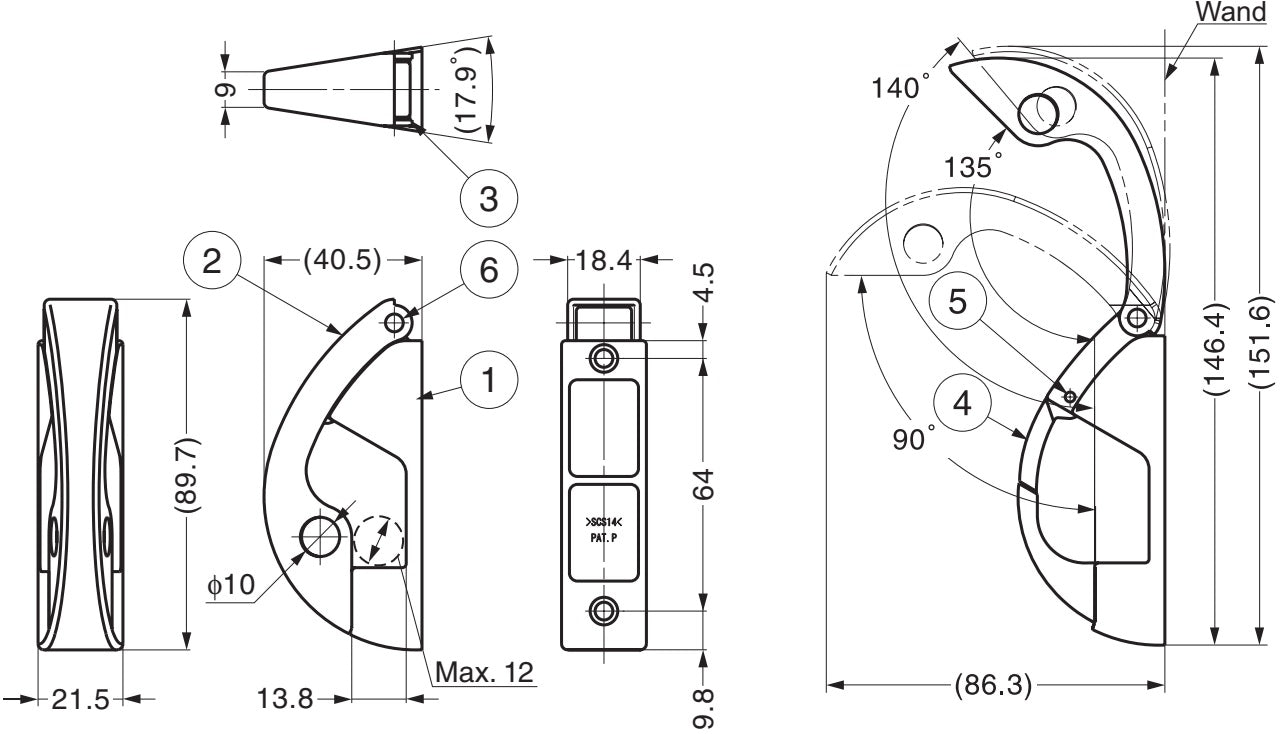 - The hook with safety flap EN-R80-K has two mounting holes with a distance of 64 mm (2-33/64″)