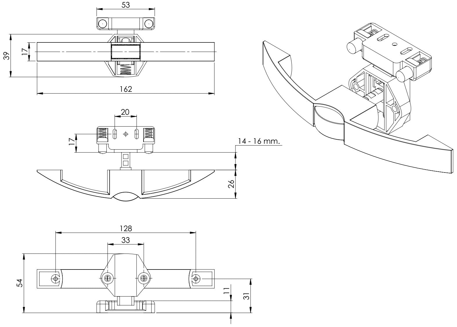- 1 piece counterpart made of ABS with spring-loaded buffers, color: gray