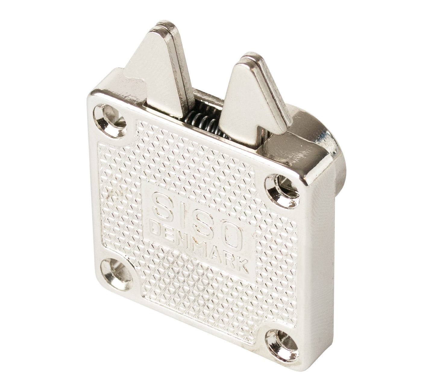 The two locking hooks automatically spread out in the strike plate after closing, thus ensuring stable locking of roller blinds or sliding doors.