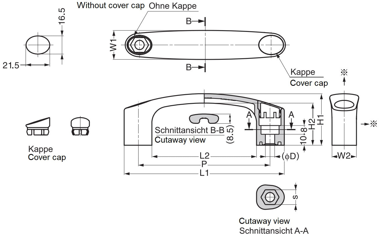 - Inner handle height (H2): 38.5 mm (1-33/64″)