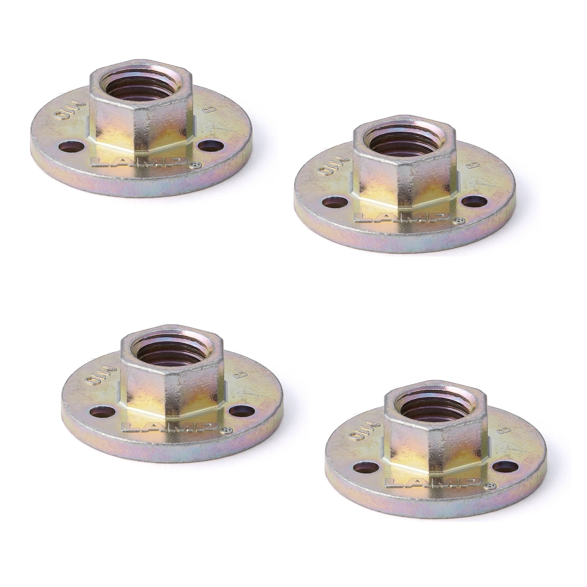 4 pieces round screw-on plate with M10 thread and three mounting holes, screw-on plate, made of solid zinc alloy (ZDC), surface: zinc chromate, AD-555-28-M10, size: 28 mm (1.2")