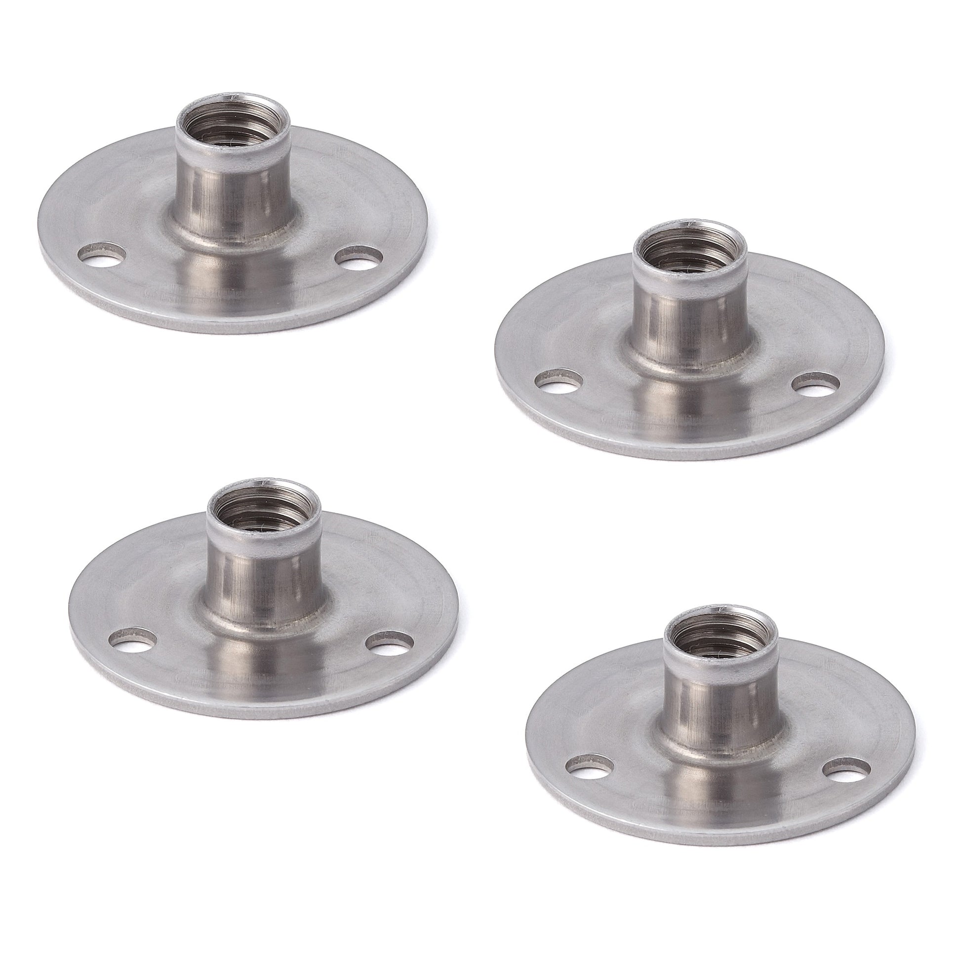 4 pieces round mounting plate with 3/8-16 UNC thread and three mounting holes, screw-on plate, made of stainless steel (V2A), surface: shiny polished, AP36-N3, size: 36 mm (1.5")