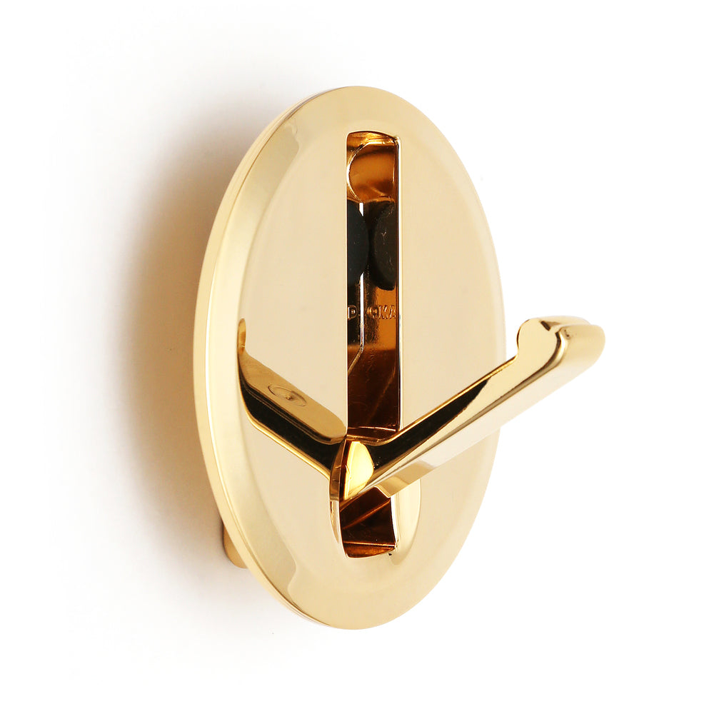 Hochwertiger runder Federklapphaken zum Einlassen, Oberfläche: goldfarbig, glänzend poliert, 64 mm (2,6″), NF-R64-GP. Runder Klapphaken mit Schließautomatik, für Tinyhouse, Wohnmobil, Caravan, Yacht, Zug und viel mehr, von Sugatsune / LAMP® (Japan)