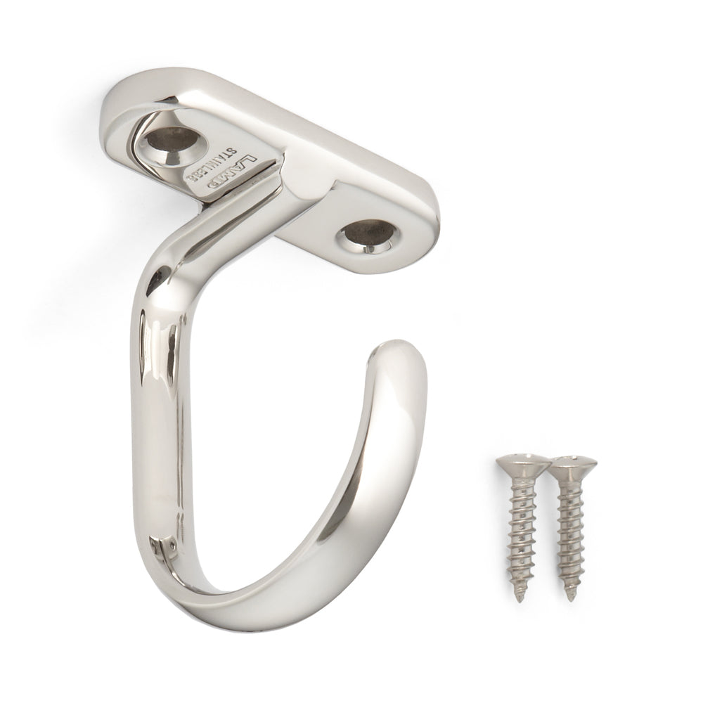 Weather-resistant universal hook with rounded tip, made of solid stainless steel (SUS304, V2A), surface: glossy polished, DS-H-50, size: 70 mm (2.8")