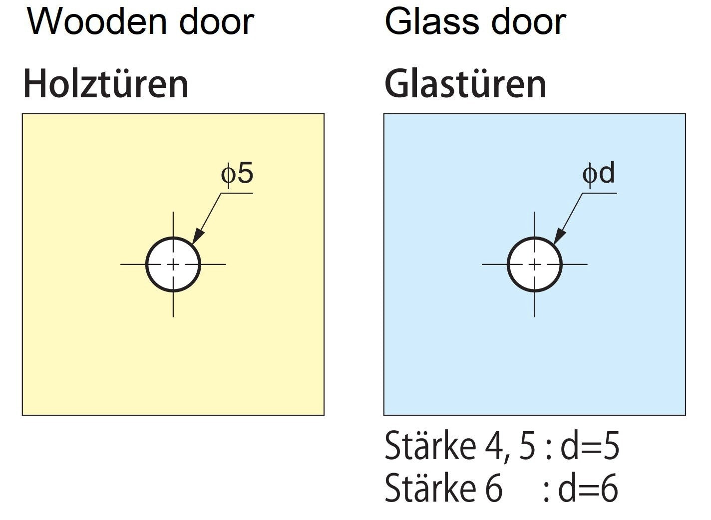 - For fastening, a hole must be prepared in the door ( see drawing )