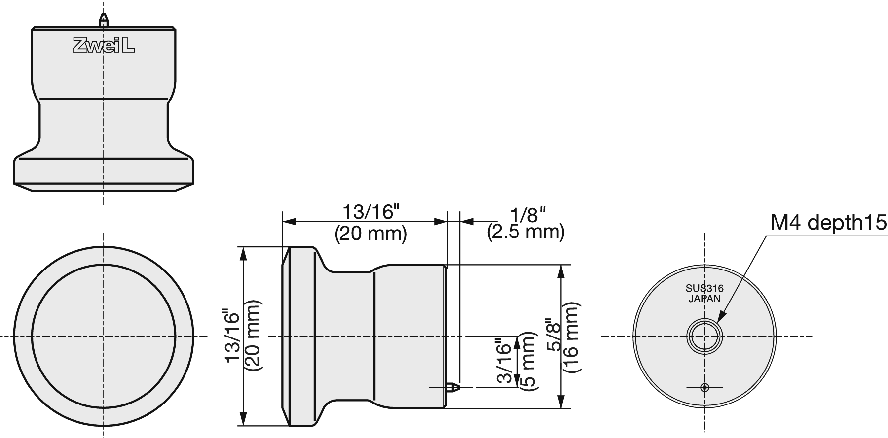 - Mounting hole depth: 15 mm (0.6″)