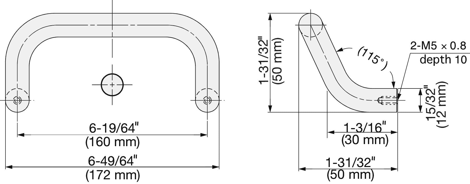 • Hauteur de la poignée : 50 mm (1-31/32″)