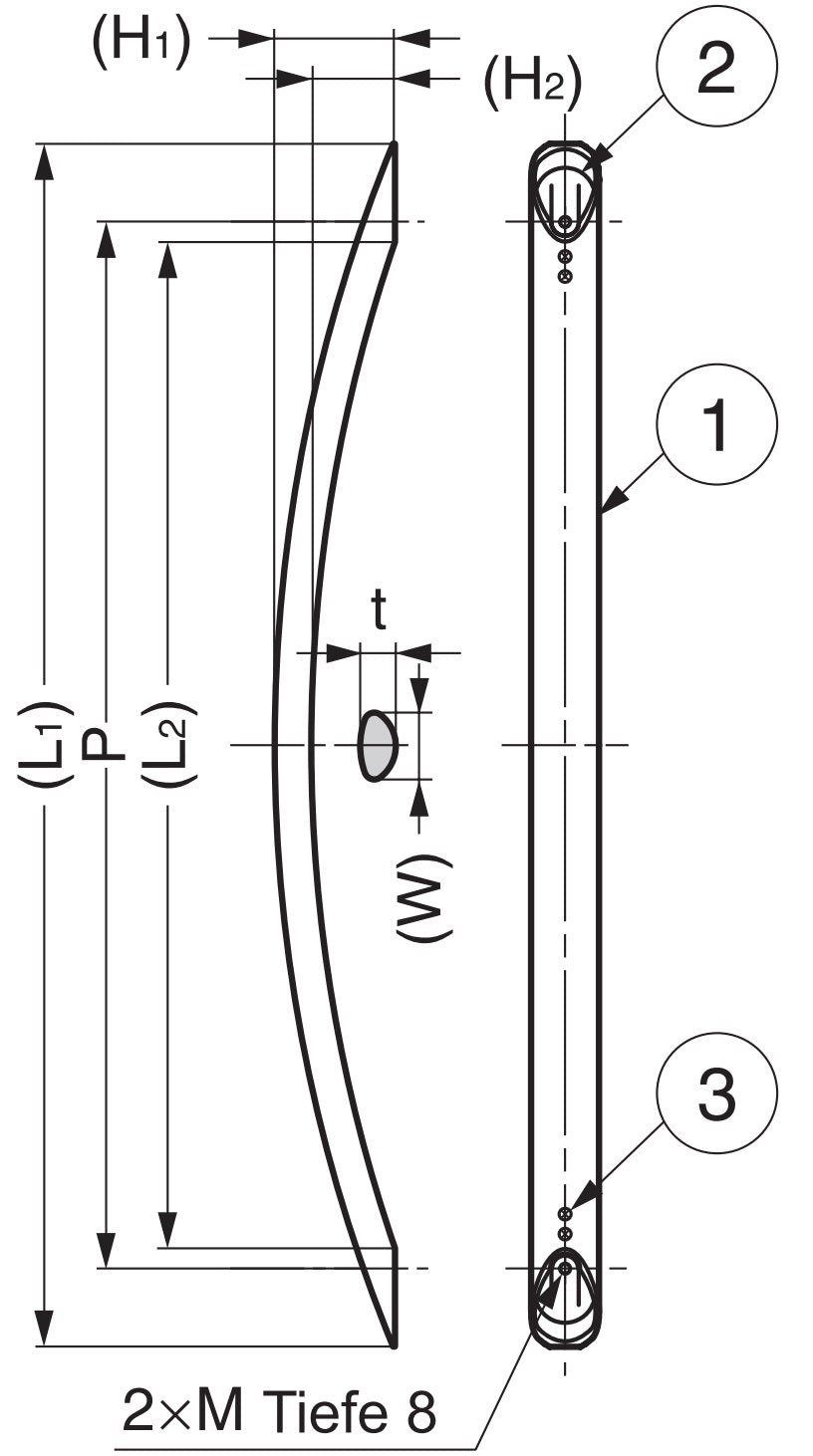 - Der Industriegehäusegriff SOR-800BL hat zwei Befestigungslöcher mit der Tiefe 8 mm (5/16″) mit Innengewinde